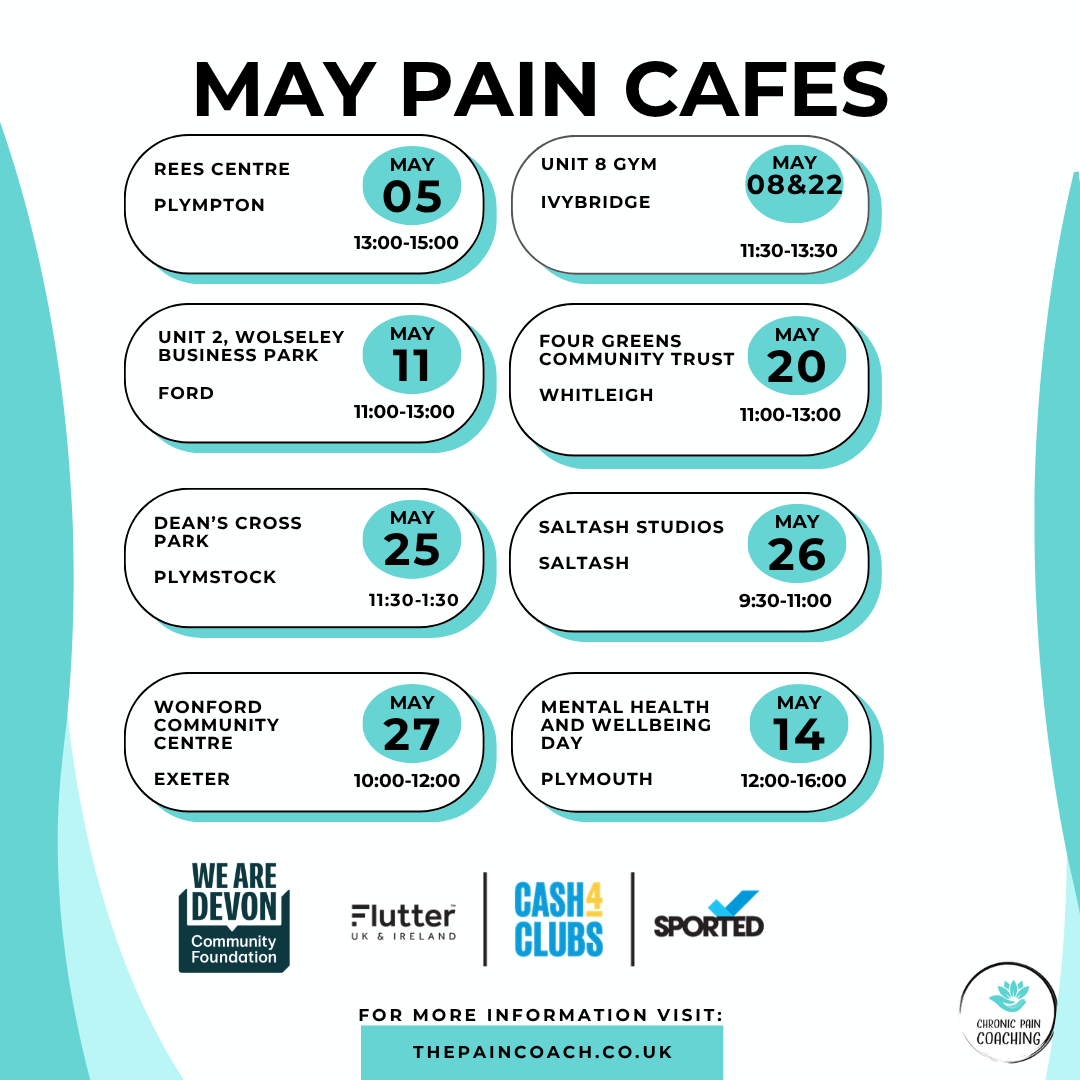 We have also formed a Devon Pain Cafe Community of Practice which meets monthly and helps to share research and best practice for all those running pain cafes. Please see tab above for further details.